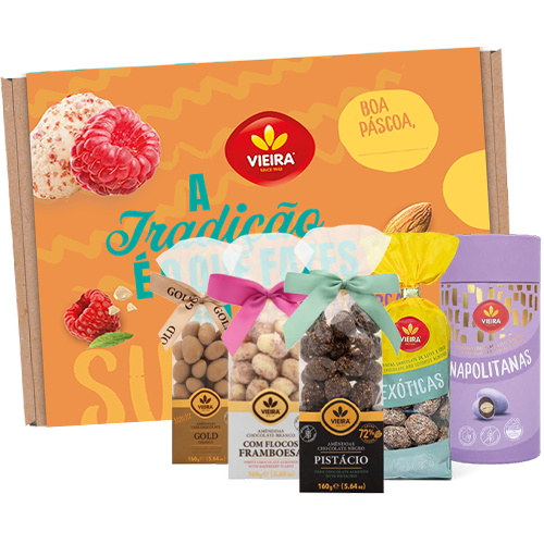 Onde o tradicional encontra o inesperado, reunimos um mix irresistível de amêndoas e chocolates Vieira, perfeitos para celebrar a Páscoa de forma especial. A Box SUPREMA é muito mais do que uma seleção de sabores únicos , é um gesto de partilha e solidariedade, esta box vai além do prazer de saborear: por cada SUPREMA vendida, está a contribuir para a associação ACREDITAR, ajudando a apoiar crianças e famílias que enfrentam o desafio do cancro.